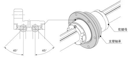 支撐軸承采用了抗力矩負(fù)荷能力強(qiáng)的45°接觸角。